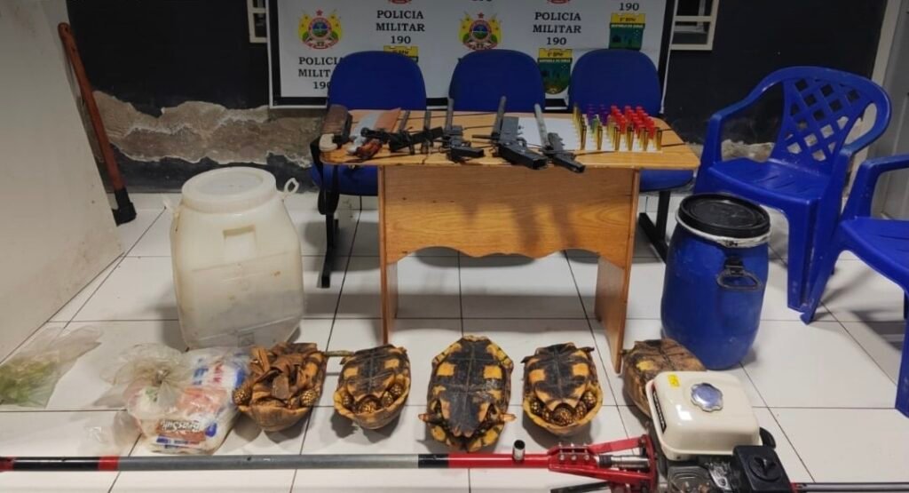 Além disso, os policiais localizaram cinco armas de fogo artesanais, munições e instrumentos utilizados na caça. Os suspeitos confessaram que estavam na área protegida há cerca de cinco dias realizando a atividade ilegal.