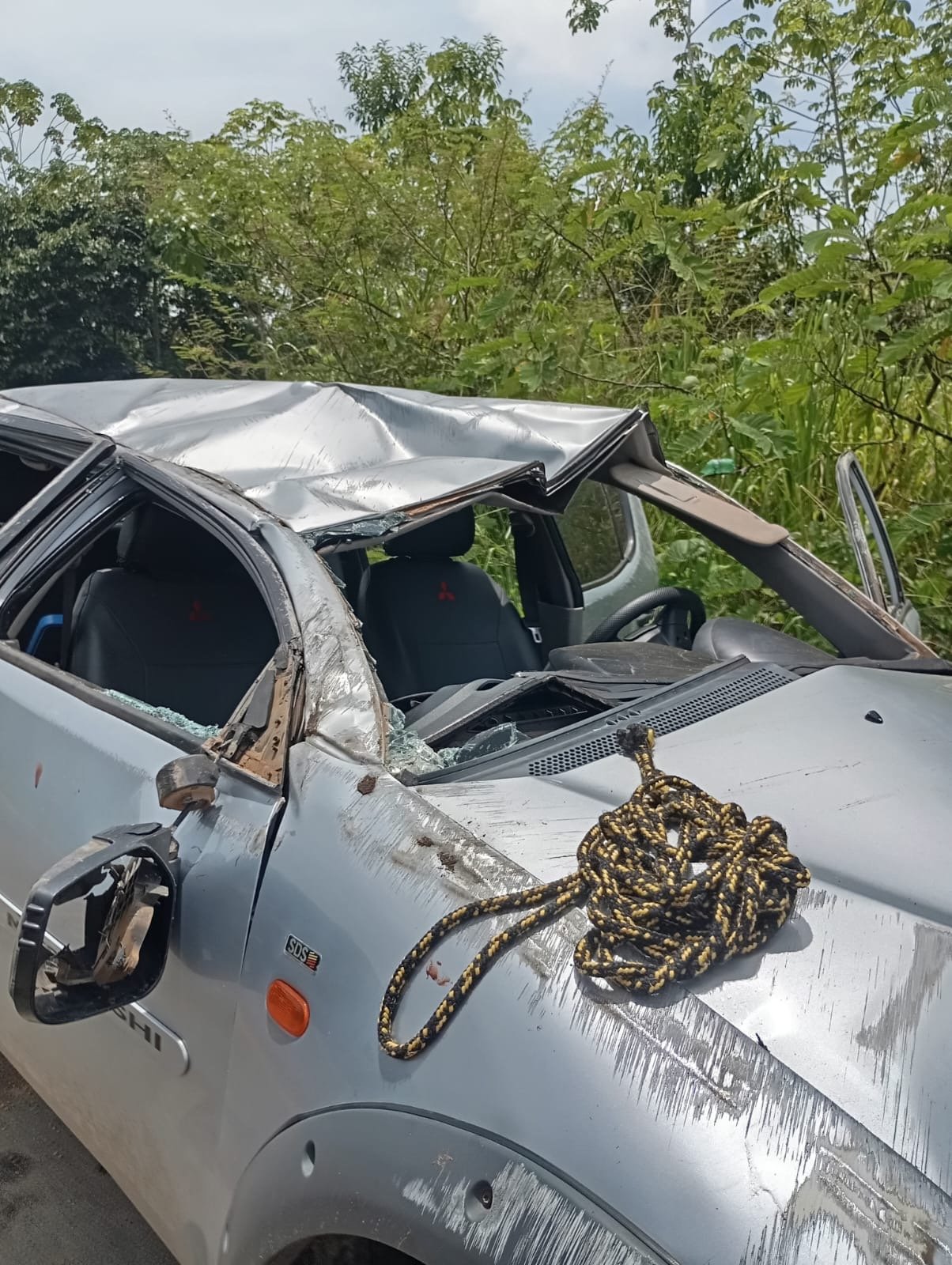 Pessoas que estavam nas proximidades prestaram os primeiros socorros logo após o acidente. Na caminhonete estavam três ocupantes que, apesar da gravidade da ocorrência, conseguiram sair do veículo andando.