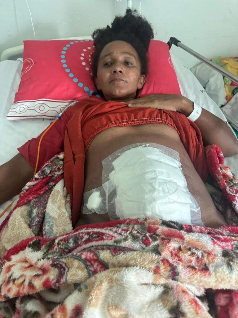 Há mais de um mês, Maria Verônica Oliveira da Silva, 40 anos, moradora do trapiche do Bairro da Várzea, às margens do rio, está internada no Hospital do Juruá, em Cruzeiro do Sul. No último mês, ela passou por três cirurgias no intestino e sofreu uma parada cardíaca. O quadro de saúde grave se soma a problemas crônicos que a acompanham há anos, incluindo um câncer já tratado.