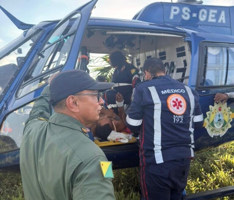 O acidente ocorreu após a queda de uma árvore em uma área de difícil acesso, o que exigiu o acionamento da equipe aérea para garantir rapidez no socorro. Após o atendimento inicial, o paciente foi encaminhado para Rio Branco, onde receberá atendimento médico especializado.